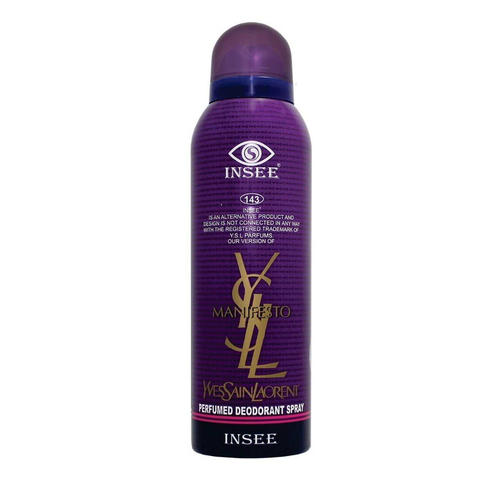 اسپریهای خوشبوکننده بدن از سری محصولات محبوب بین بانوان و آقایان است. معمولا اکثر افراد علاقه دارند همواره بدن و لباس آنها عطر و رایحه دلنشینی داشته باشد. با استفاده مداوم از اسپریهای خوشبوکننده میتوانید همواره اعتماد به نفس بالا داشته باشید و در میان مردم جامعه بدرخشید و از نظر مرتب بودن و شیک پوشی زبانزد خاص و عام شوید. اسپری زنانه اله ایو سن لورن اینسی دارای رایحه بسیار دلنشین و معتدل گرم و شیرین است و در دسته عطرهای معطر فوژه قرار میگیرد. رایحه ی این اسپری را گل صدتومانی، گل رز، گل فریزیا، فلفل، لیمو، وتیور و نعناع هندی تشکیل می دهد. در واقع ادوتویلتهایی با قابلیت از بین بردن باکتریهای ایجادکننده بوی بد تعریق هستند؛ محصولی که نمونه مشابه و البته گران قیمت آن را میتوان در برندهای بین المللی مشهور در صنعت عطرسازی یافت. استفاده از مرغوبترین و باکیفیتترین اسانسها و ترکیبات موجود در دنیا با غلظتی در حد عطرهای ادوتویلت، تحت فرمولاسیون دقیقی که به تایید برترین شرکتهای تولید اسانس در دنیا رسیده است، باعث شده مسیر بویایی اسپریهای اینسی علاوه بر نتهای اولیه، در نتهای میانی و پایه نیز دقیقاً مشابه با نمونههای اصلی بوده و از لحاظ ماندگاری نیز با ادوتویلتها برابری کند.