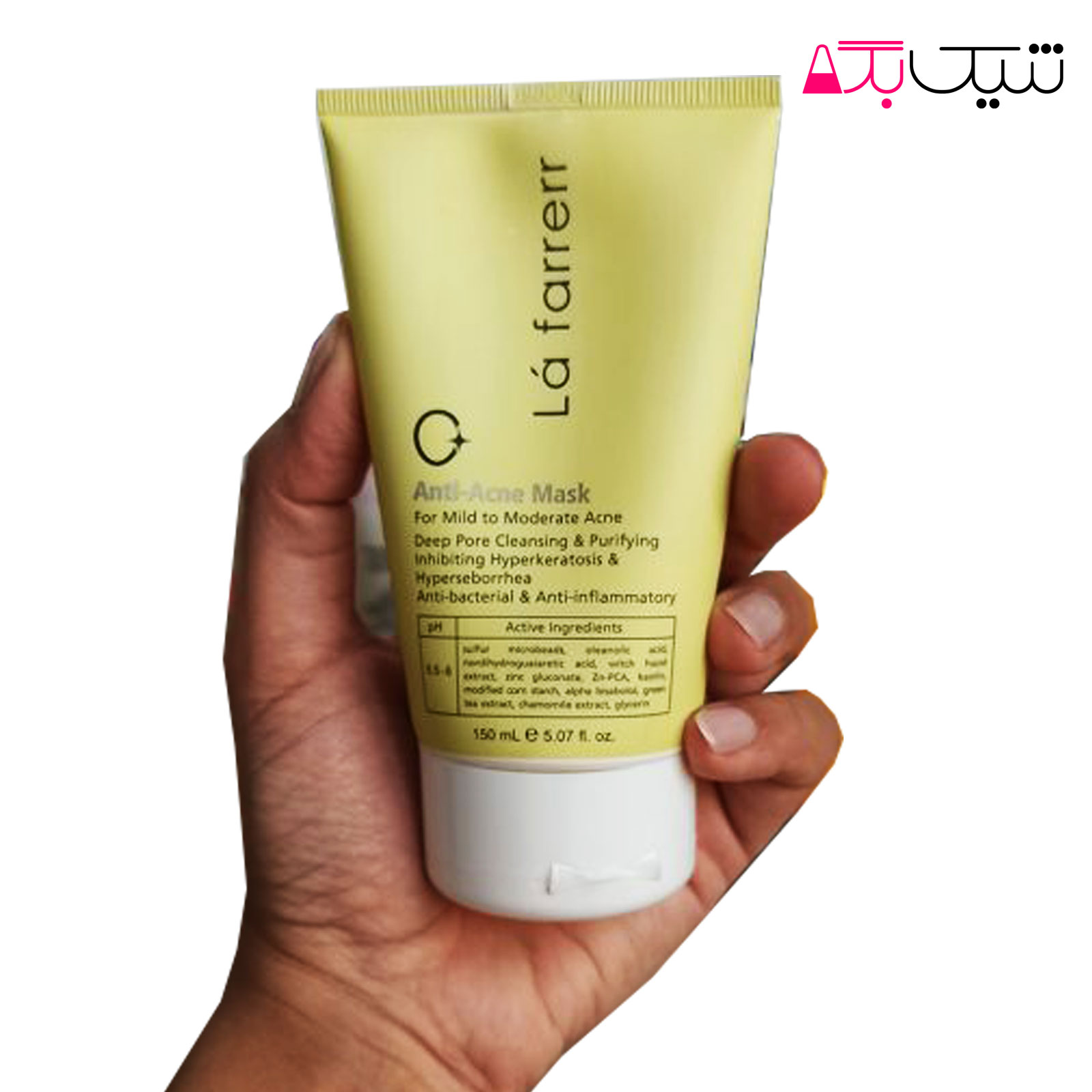 ماسک ضد آکنه لافارر حاوی عصارههای گیاهی چای سبز، بابونه، نشاستهی ذرت، هاماملیس، مواد موثر گوگرد، زینک پی اس آ و کائولین میباشد. ماسک آنتی آکنه لافارر با فرمولاسیون حرفهای برای رفع جوش و آکنههای خفیف تا متوسط طراحی شده است. از ویژگیهای خوب این محصول این است که هم به صورت ماسک تهیه شده و هم از فرم میکرونیزه گوگرد در آن استفاده شده تا با نفوذپذیری عمیق به منافذ پوست، تاثیر بینظیری برایتان به ارمغان بیاورد.